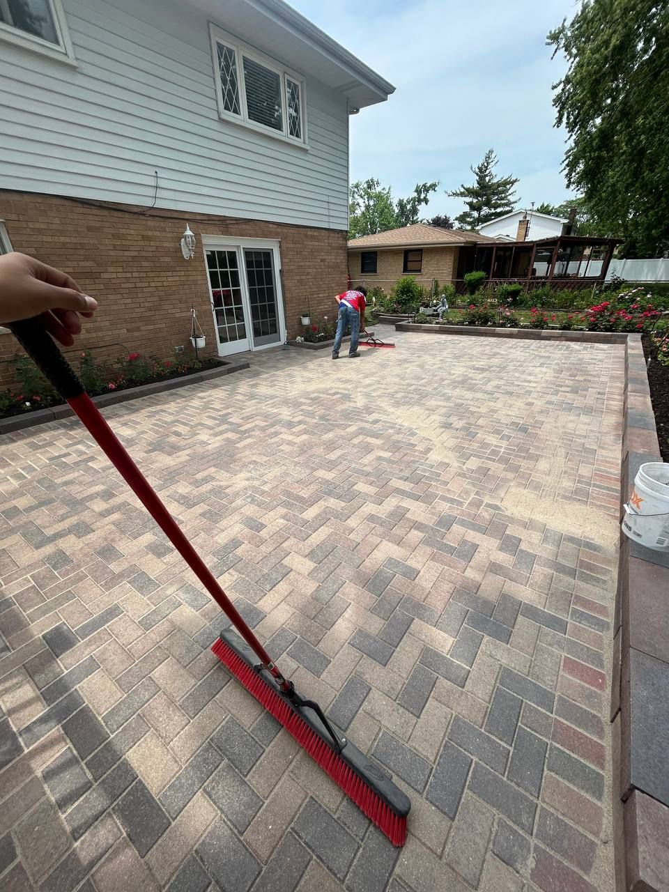 paver sanding in Lake Zurich, IL (60047) and nearby Lake County communities. Our sanding services help lock your pavers in place and give your hardscape that clean, finished look.